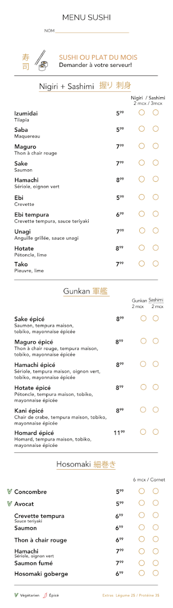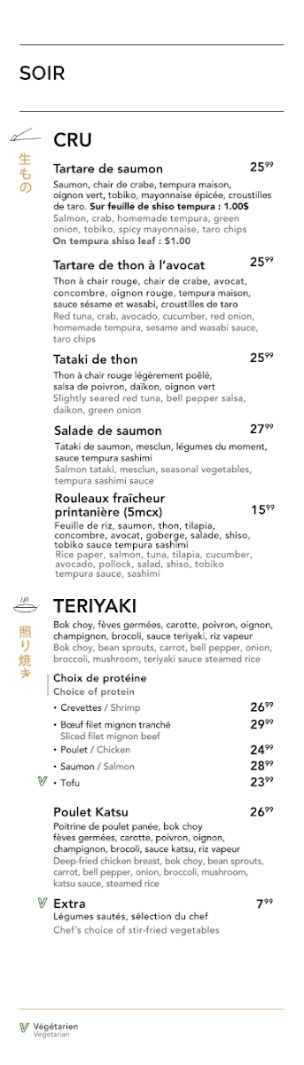 Le Satori Sushi in Saint-Jean-sur-Richelieu stands out as a refined Japanese dining destination. The menu artfully balances traditional sushi with inventive twists. Signature raw dishes like the Salade de Saumon Tataki feature salmon tataki paired with fresh mesclun and seasonal vegetables, elevated by a delicate tempura sashimi sauce. For a heartier option, their Bœuf Sashimi offers a lightly seared beef flank steak seasoned with Japanese seven spices, daikon, and green onions, blending subtle umami and spice.